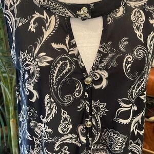 Ember L blue/cream tank top with gold buttons Semi sheer