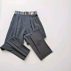Emblem Pants Women 16 Black Waist Embroidery Tribal Elastic Zip Pleated Boho VTG