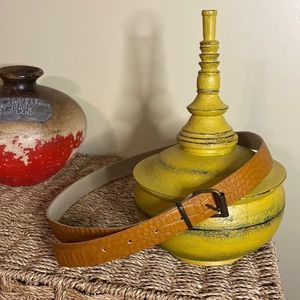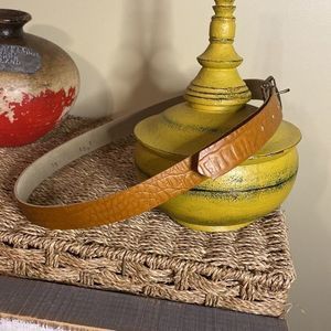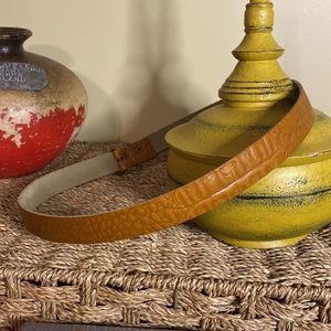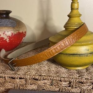 No size on belt but measurements from buckle to first opening is 32”. Belt buckle to the last opening is 36”.