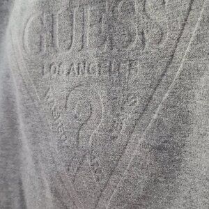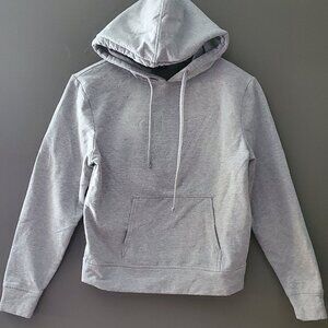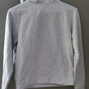 Heather grey hooded sweater with embossed logo on front. Like new condition.