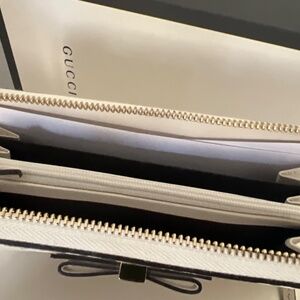 Mint condition, never used Gucci wallet with spaces for 12 cards, change pocket and bill section. Purchased in Paris in 2018.