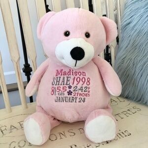 *If you have an embroidery machine, you can easily remove the stuffing (as seen in photos) to hoop and embroider for personalization.