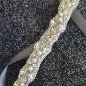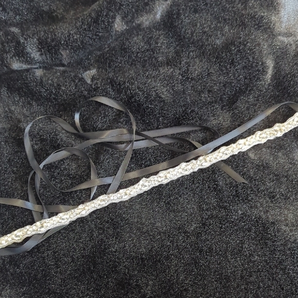 - ideal for a black dress - hand embroidered, finished on backside so fabric will not fray - never worn, satin ribbons have not been adjusted/trimmed