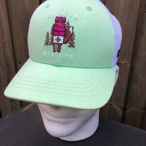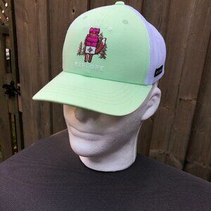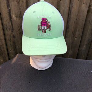 I have no clue what the size of this hat is, but it is placed on an adult foam head for size reference. Also note that some vintage hats do lose their shape over time in the front and top portions of the hat, while others do not.