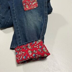 Excellent condition. No rips or stains. Elastic waistband with drawstrings. Harem style. Embroidered patches at the front and back of the jean. Rolled up hem. Size L - Asian size, please check measurement photos.