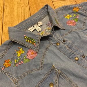 Embroidered Denim Blouse