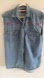 Embroidered Denim Sleeveless Shirt with distressed cut-off sleeves