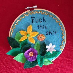 Handmade felt embroidery. Lettering has flaws, but it looks so cute on the wall! For the sassy person who also enjoys something colourful! 6 inch hoop