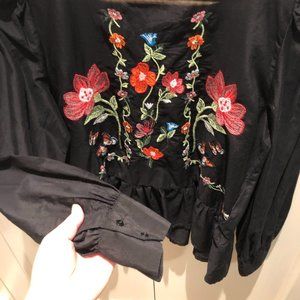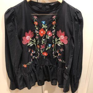 Embroidered Floral Peplum Blouse (M)