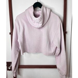 Embroidered H&M Cropped Lilac Hoodie. With pale pink/purple ‘socially anxious’ embroidered text done by me. Hoodie has also been cropped