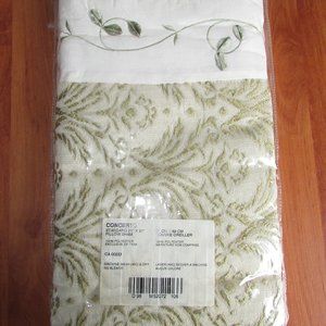 Embroidered leaf and scroll designs on outer edges.