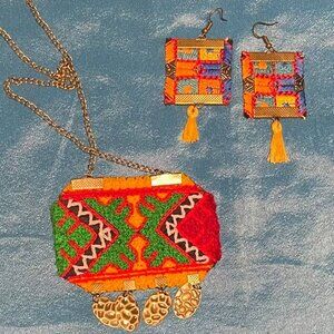 Embroidered Persian Earrings necklace set| dangling fabric earrings
