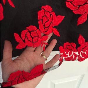 Embroidered Red Roses Dress