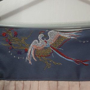 Its cinched waistband, accentuated with an intricate floral embroidery, adds a touch of sophistication to the garment.