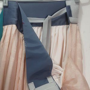 Elegantly flowing, this full-length skirt boasts a soft blush hue that exudes a delicate charm.