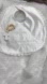 Elegant satin fabric with embroidered cross design and personalized . Perfect for Baptism outfit