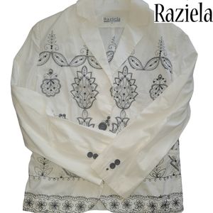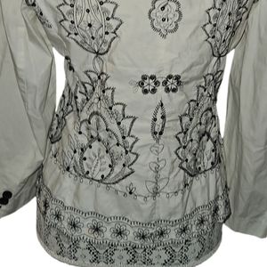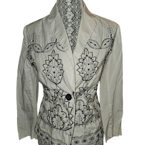 Rziela is a Tel Aviv designer, This is an embroided and sequined jackets, black on white, back and front.