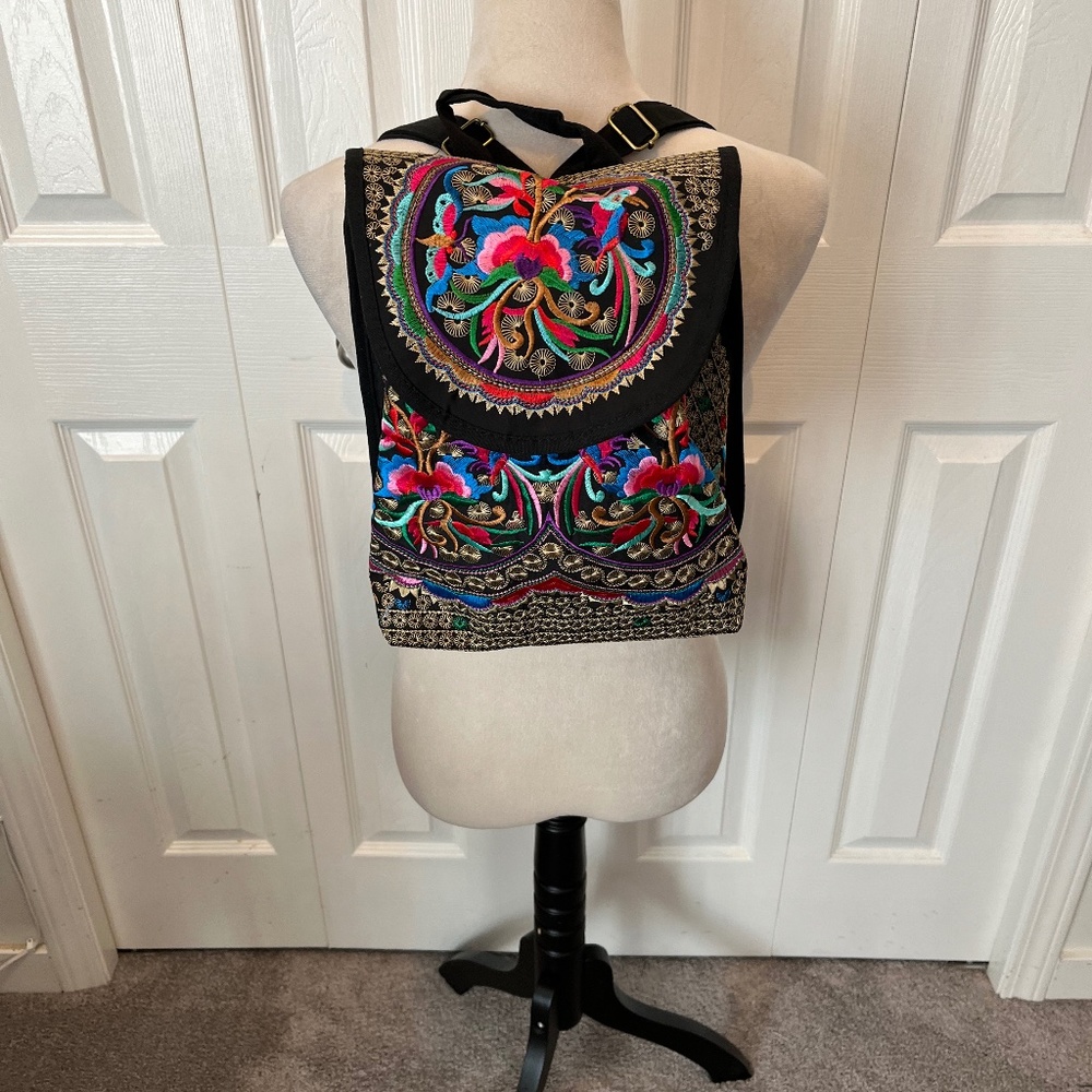 Adjustable straps embroidered back pack beautiful floral pattern