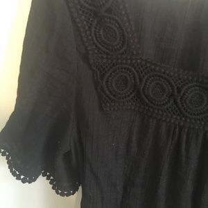 Adorable black T-shirt blouse with embroidery detail on neck and sleeves. Loose peasant top fit. Excellent condition.