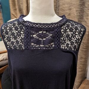 Lane Bryant illusion collection classic mock tank size 18/20 embroidered bohemian tank size Navy blue. Worn once washed twice. faint wash wear on embroidery