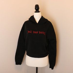 Embroidered "hell was boring" cropped hoodie in perfect condition except for one pulled thread in the text (see photos for details).