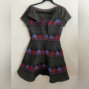 Embroidered lace structured cap sleeves party dance cocktail dress Sz XS