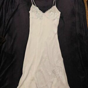 Embroidered sky blue Y2K slip dress (size large)