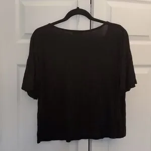 Beautiful floral embroidery gives this stretch top a sweet touch, with billowy light ruffled sleeve.