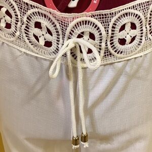 Embroidered waistband white front tie crepe pants 🔴