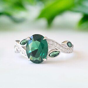 Emerald Green Oval Gemstone Ring, 925 Sterling Silver Charmed Aroma Size 7
