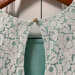 This Emerald Sundae mint seafoam lace dress is a stunning choice for homecoming or other semi-formal events. It features a delicate lace floral bodice paired with a flowy mint skirt, creating an effortlessly feminine look. The combination of soft textures and flattering colors makes it a perfect addition to your wardrobe.