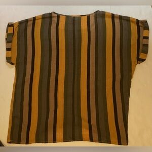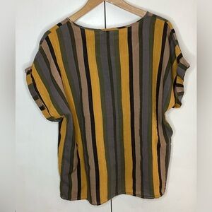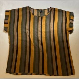 Emery Rose XL cotton blend yellow,green,brown, grey striped pull on top