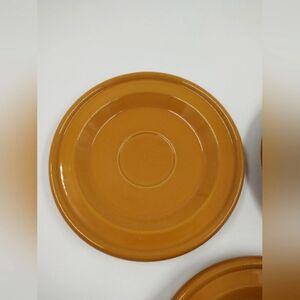 Emile Henry France 3 saucers in mustard yellow,no chips cracks or crazing.