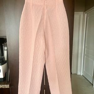 Stunning two piece set from Emilia Wickstead. The favourite brand of Kate Middleton and Meghan Markle. This set includes a pink top with big peplum detail and pink straight leg pants. The fabric has beautiful crinkle texture (see last picture). Great condition.