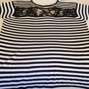 Emilio Pucci Striped Knit Silk Top with black front lace insert. Classically elegant worn on its own or under a blazer. Size M. Generous fit. Perfect condition. Lower cut back. Dimensions: Shoulder to shoulder 19 inches. Length 26 inches, width 18 inches across the front.