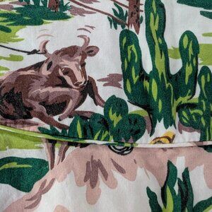 Fitted and Flattering M/UK12 pencil skirt from British Designer Emily & Fin. Retro pattern of cacti, steers, and cowboys. Slit in the middle reverse. Hidden zipper. Good condition
