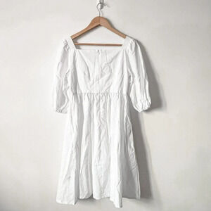 Emma Knudsen White Puff Sleeve Square Neckline Charlotte Dress Sz S