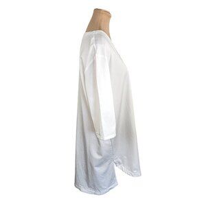 Emma Knudsen White Shirt Style Short Sleeve Tunic Top Sz M