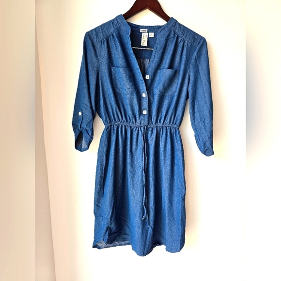 Emma & Michele Blue Denim Like Rayon Shirt Dress 3/4 Sleeve Size S