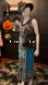 The print on this one is amazing and shades of blues, yellow, purple and black. She has a V-neck in the front with black trim around and a gathered waist.