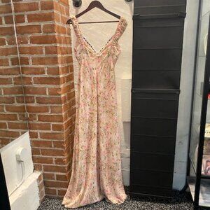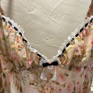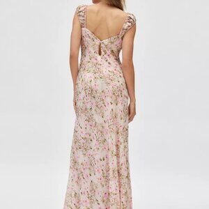 Love is in bloom with this ultra-romantic Emmaline floral maxi dress—a chiffon light yellow dress decorated in a dream-like floral print. Featuring ruched cups with an alluring ribbon lace trim at the sweetheart neckline—it's the perfect wedding guest dress to celebrate love.