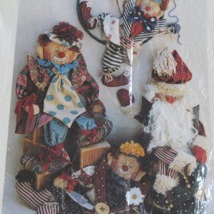 Contents: Includes patterns and instructions for Santa Claus, Emmett Clown doll, Country Clowns, in either 18", 15" or 13". Coat and accessory patterns to fit each size doll. Arms and legs have no stuffing. Full size patterns.