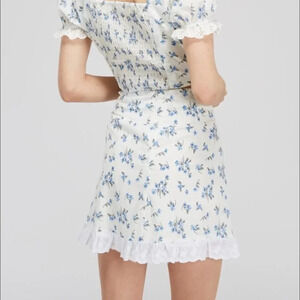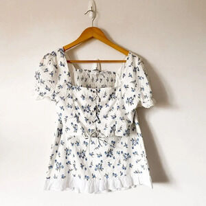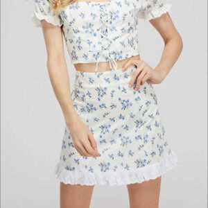 Emory Park Blue Ditsy Floral Eyelet Lace Detail Two Piece Mini Skirt Set Sz S