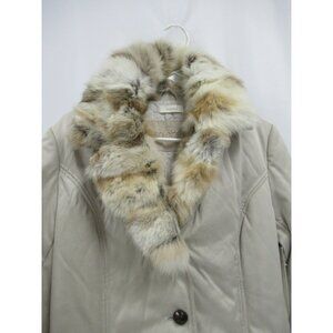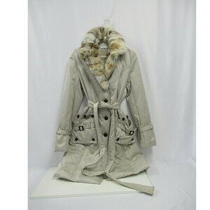 Emozioni Italian Womens Trench Coat Fur Collar Cream Med-Large New with Tags
