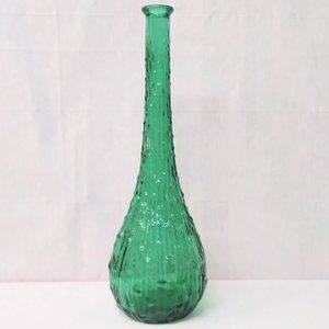 Absolutely pretty and shiny tall emerald green, probably Empoli, made in Italy genie bottle. The dripping wax pattern is so great, totally MCM vibes. It is marked on the bottom. No stopper. Can be use as a perfect decor piece, as a tall decanter, or bud vase. Great condition, no chip or crack. Non smoker home.