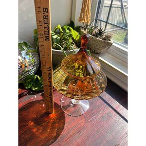 Empoli Large Vintage Amber Apothecary Jar Italian Art Glass Midcentury Modern MCM Lidded Cookie Candy Jar Canister
