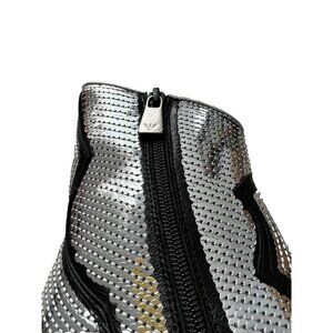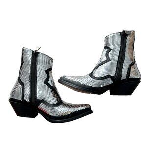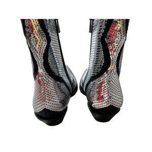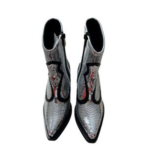 Emporio Armani Calfskin Leather Sequin Cowboy Booties Silver ( 35 )
