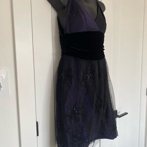 Emporio Armani Dress Wrap Tulle Velvety Beaded Star Purple Size US 8