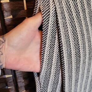 Emporio Armani Icon Chic black and white stripes trousers feature 2 front pockets and are pleated giving these trousers a barrel look, slightly tapered.
