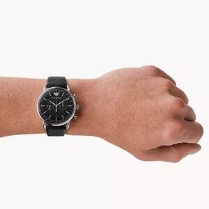 Emporio Armani Men's Chronograph Black Leather Watch - AR11143